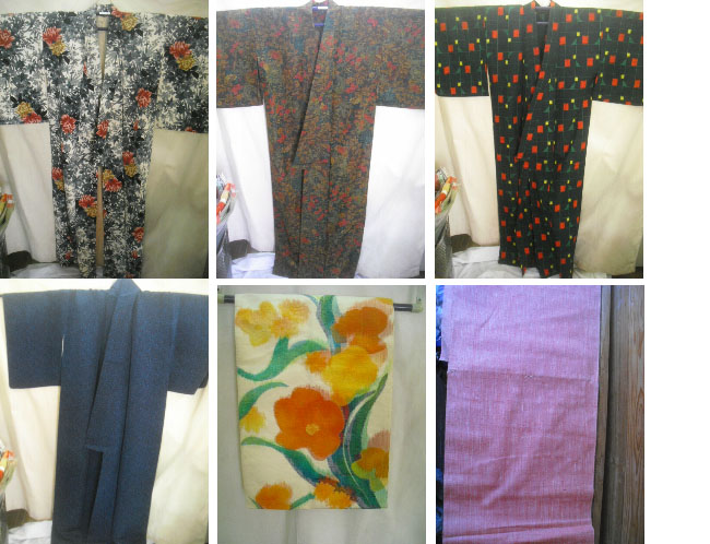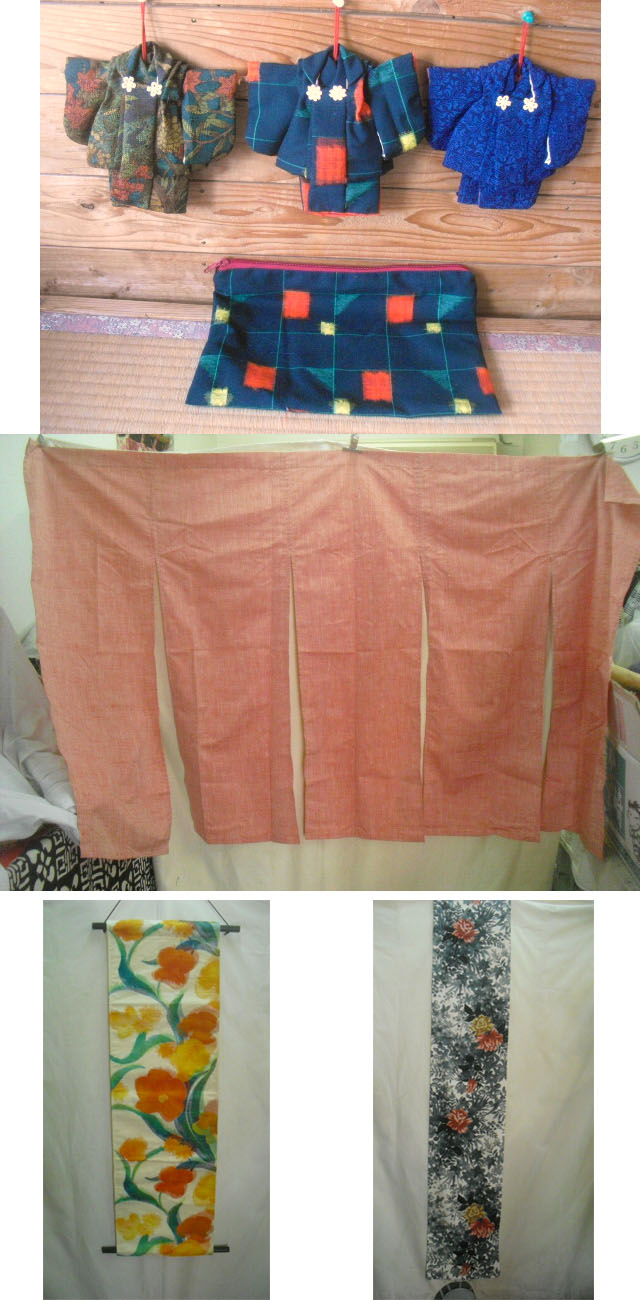 お客様から送っていただいた着物やプリント布をリメイクした作品の一部です。